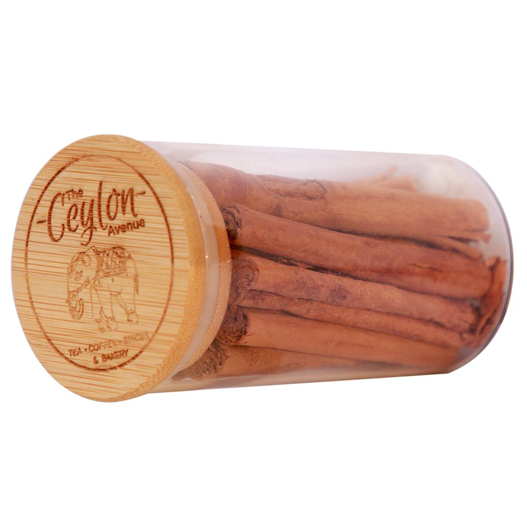 A gift-worthy presentation of pure Ceylon cinnamon—beautifully bottled for freshness and charm.