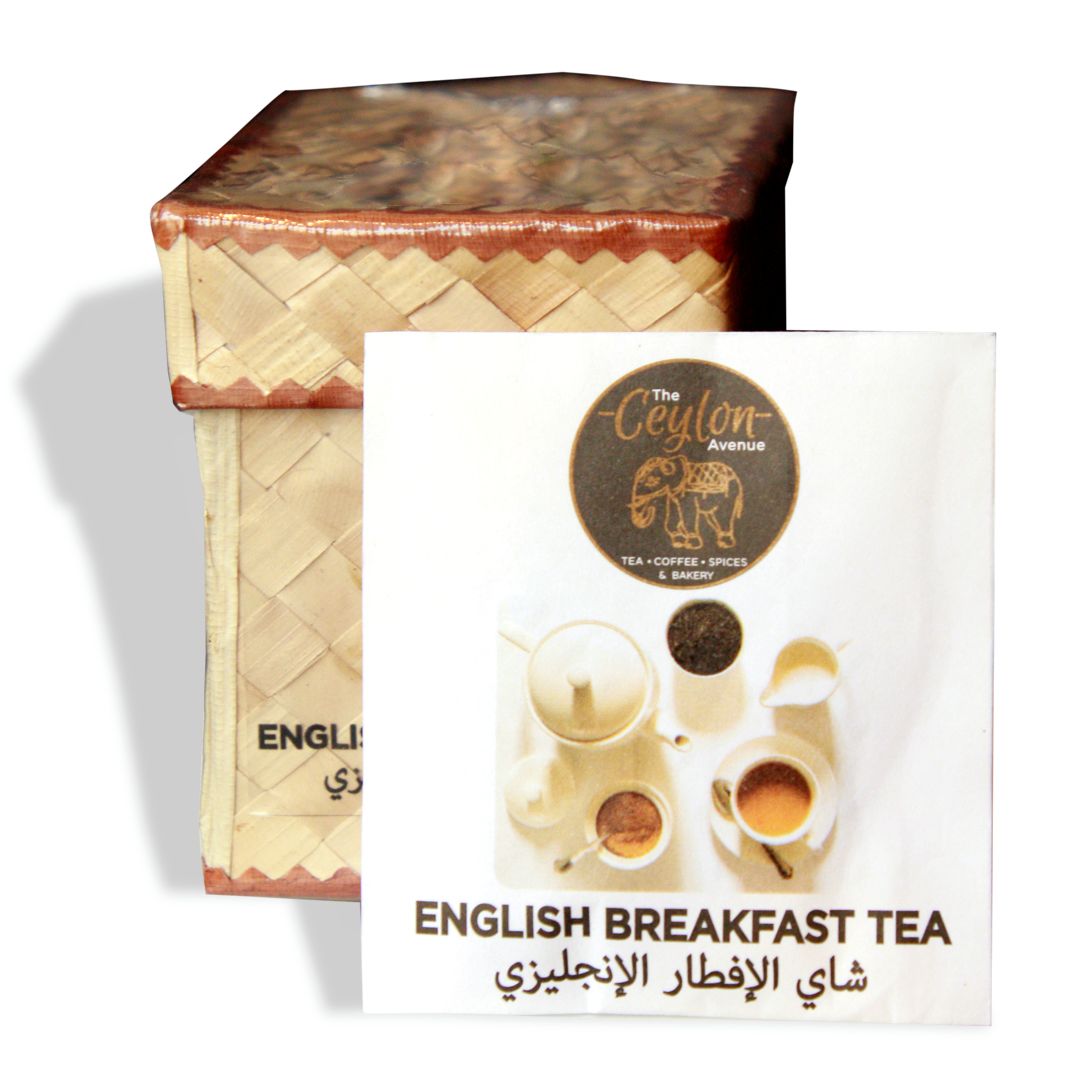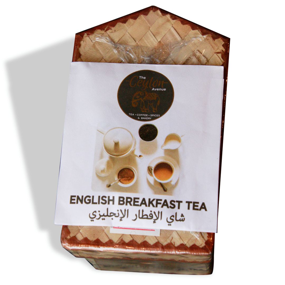 A traditional Ceylon English Breakfast tea packed in a handmade woven box for flavor and flair.