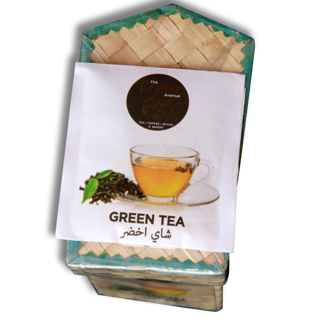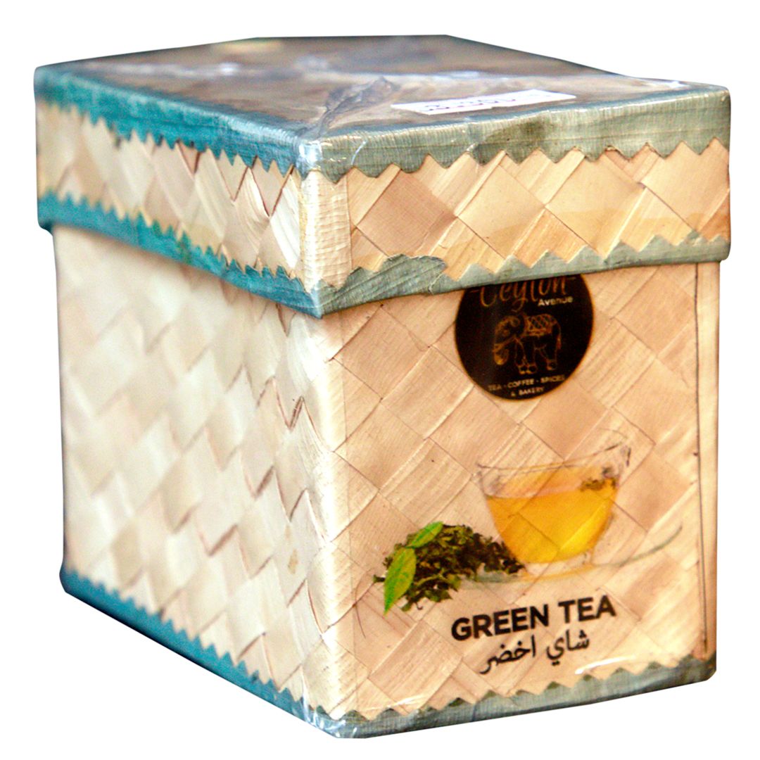 Antioxidant-rich green tea leaves, sustainably packed in a handcrafted woven box. A mindful gift or self-care ritual.